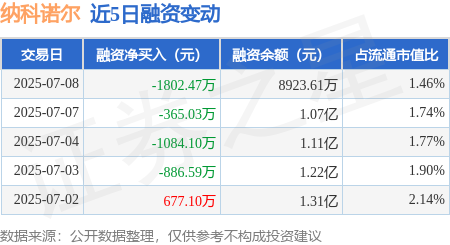 本站消息,7月8日,纳科诺尔(832522)融资买入1259.77万元,融资偿还3062.24万元,融资净卖出1802.47万元,融资余额8923.61万元。