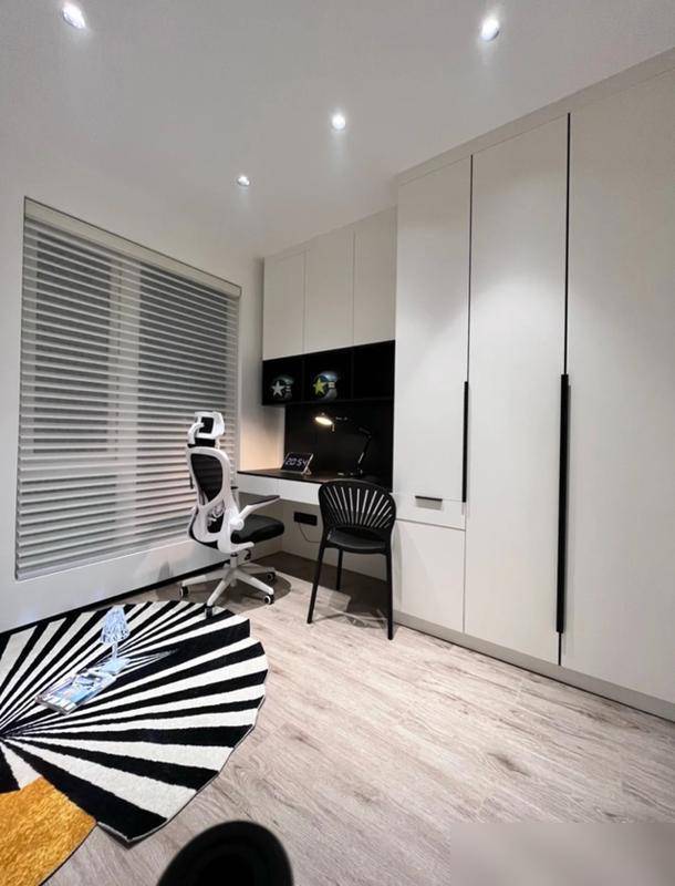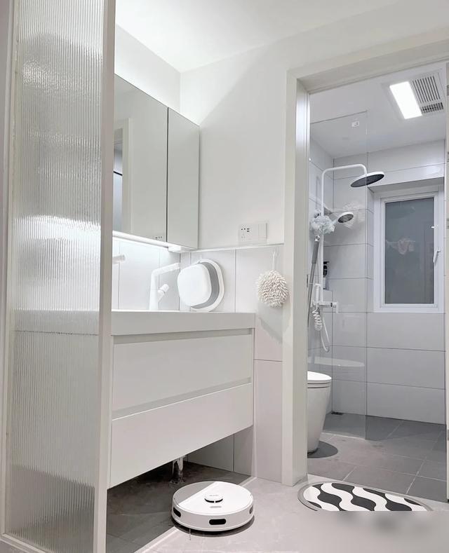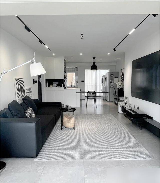 大白墙搭配无主灯设计,天花板干净利落,光线均匀洒落,整个屋子瞬间显大不少。